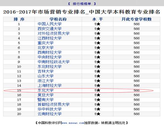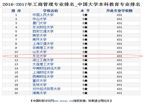 2016年2月23日,中国科学评价研究中心(RCCSE)、武汉大学中国教育质量评价中心联合中国科教评价网(www.nseac.com)隆重推出《2016年中国大学及学科专业评价报告》。发布了中国大学本科专业排行榜,共涉及478个本科专业(2015年为470个)。其中,欧博abg官网工业工程、工商管理和市场营销3个专业分别进入了20强,排名分别是第10、11和15名。