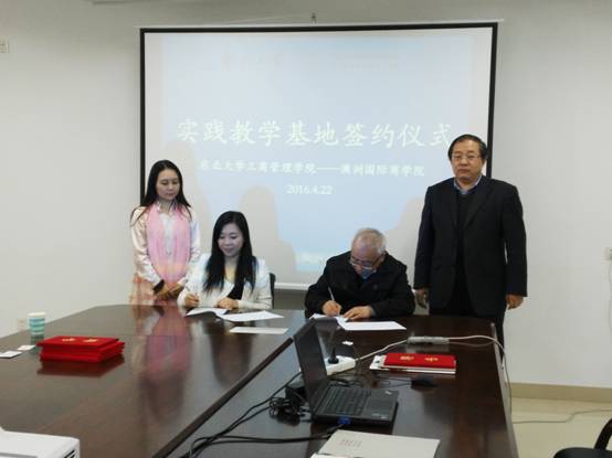 2016年4月22日,澳洲国际商学院廖伊曼、刘芳芳、何希一行三人到欧博abg官网登入口做项目宣讲,并与欧博abg官网达成了合作意向,签订了实践教学基地合作协议,建立了欧博abg官网登入口首家海外实践教学基地。欧博abg官网登入口院长马钦海、副院长孙新波、团委书记杨光参加了本次活动,活动由孙新波主持。