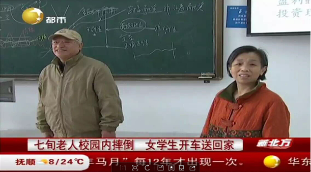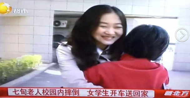 2016年5月15日上午,一对年迈苍苍的老夫妇带着辽宁卫视都市频道新北方栏目组来到欧博abg官网登入口大成教学馆,只为寻找一位善良、热心、乐于助人的姑娘。3月12日,市民刘大娘在欧博abg官网登入口校园内散步时不小心跌倒,恰巧被这位好心的姑娘发现,搀扶着刘大娘并将其安全的送到家中便转身离去。经检查刘大娘的身体并无大碍,但是她的心中始终惦念着那个将她扶起的姑娘。经过跟老伴商量后,他们想通过媒体的力量找到这位姑娘,对她说一句衷心的谢谢。