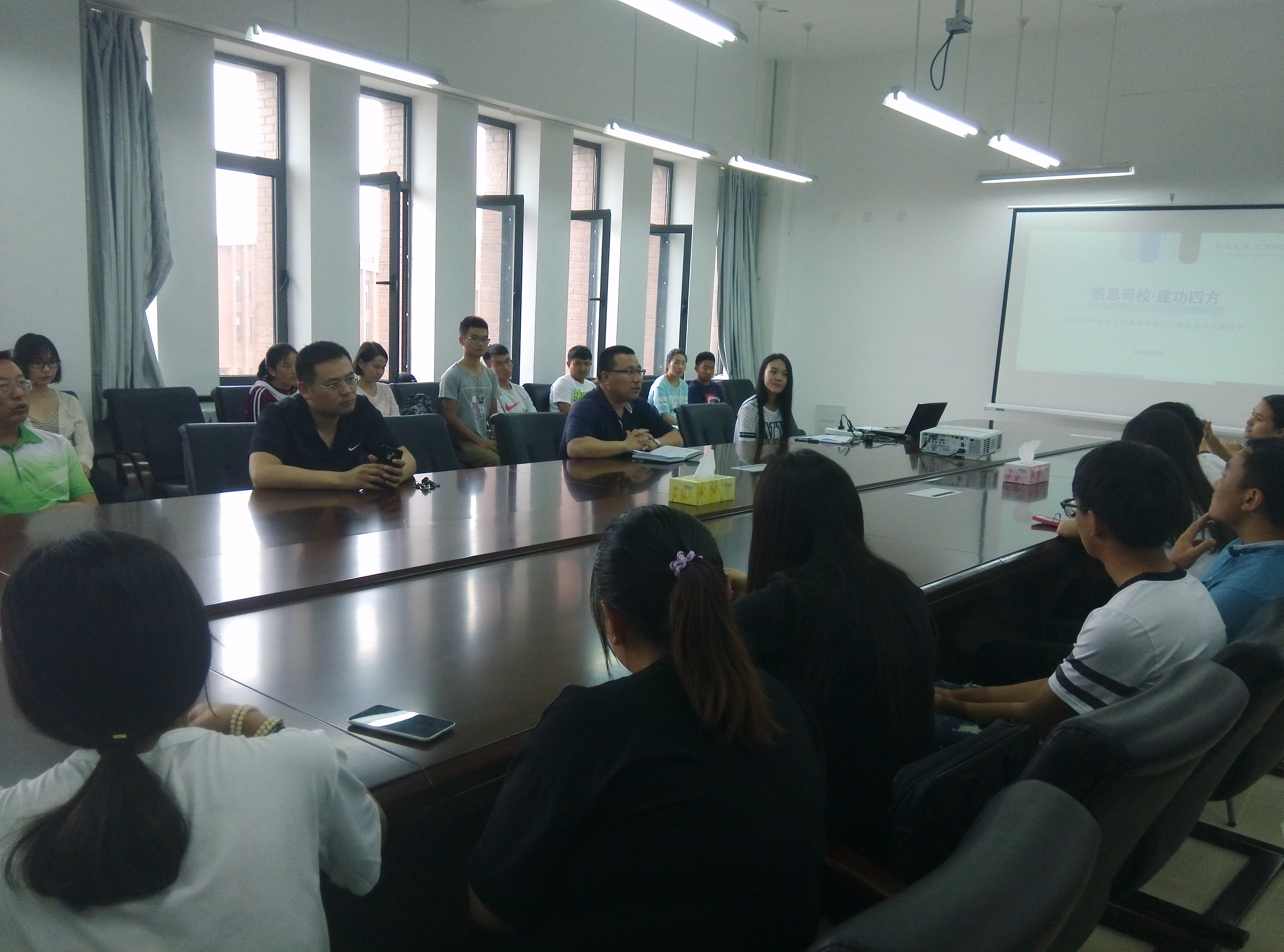 6月14日中午,欧博abg官网登入口召开“感恩母校 建功四方”2016届毕业生文明离校活动之少数民族学生座谈会。欧博abg官网登入口党委副书记兼副院长严立宁、学办主任王寰、分团委书记杨光、学生干事李斌以及2016届毕业生辅导员宋静出席座谈会。