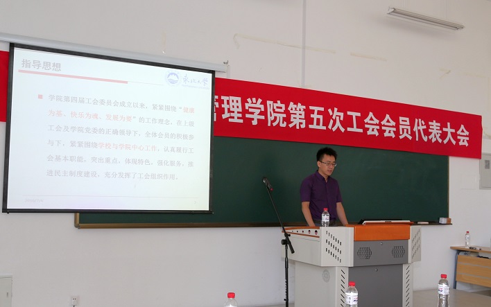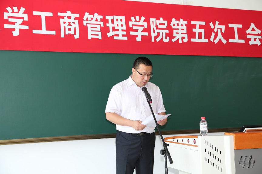 7月6日下午,欧博abg官网登入口第五次工会会员代表大会在文管学馆B112室召开。校工会主席张国联出席会议。学院领导班子成员和工会会员代表参加会议。会议由学院党委副书记兼副院长严立宁主持。