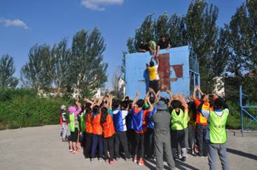 本次拓展训练的最后一个项目是翻越毕业墙。全体学员打破连队间的束缚成为一个整体。大家忘记了国籍的不同,性别的差异,纷纷表现出甘当人梯的精神。最终,学员们齐心协力、共同进退,克服重重困难征服了毕业墙。胜利的喜悦化作泪水和微笑,绽放在每一名队员的脸上。