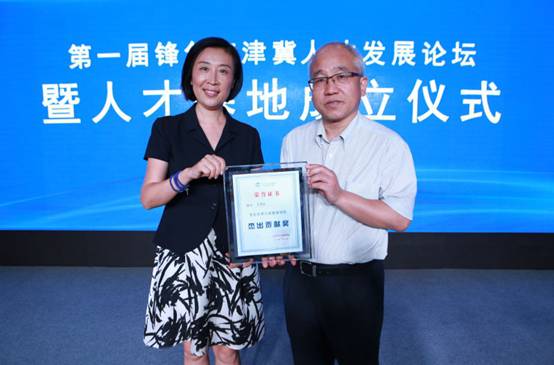 第一届京津冀人才高峰论坛暨锋创互联网人才培养基地成立仪式由锋创科技发展(北京)有限公司主办,该公司董事长张寒燕女士是欧博abg官网登入口81级管理工程专业毕业生。经过双方前期的充分交流,本着优势互补、资源共享、互惠互利的原则,欧博abg官网登入口与锋创科技发展(北京)有限公司达成合作意向,校企共建实践教学基地,共同培养适应现代企业需要的应用型管理人才。此次活动,双方共同签署了《实践教学基地协议书》,举行了欧博abg官网登入口锋创科技园实践教学基地揭牌仪式。马钦海对于张寒燕长期以来给予欧博abg官网登入口的鼎力支持和热诚关心表示感谢,并向张寒燕颁发了杰出校友贡献奖证书。