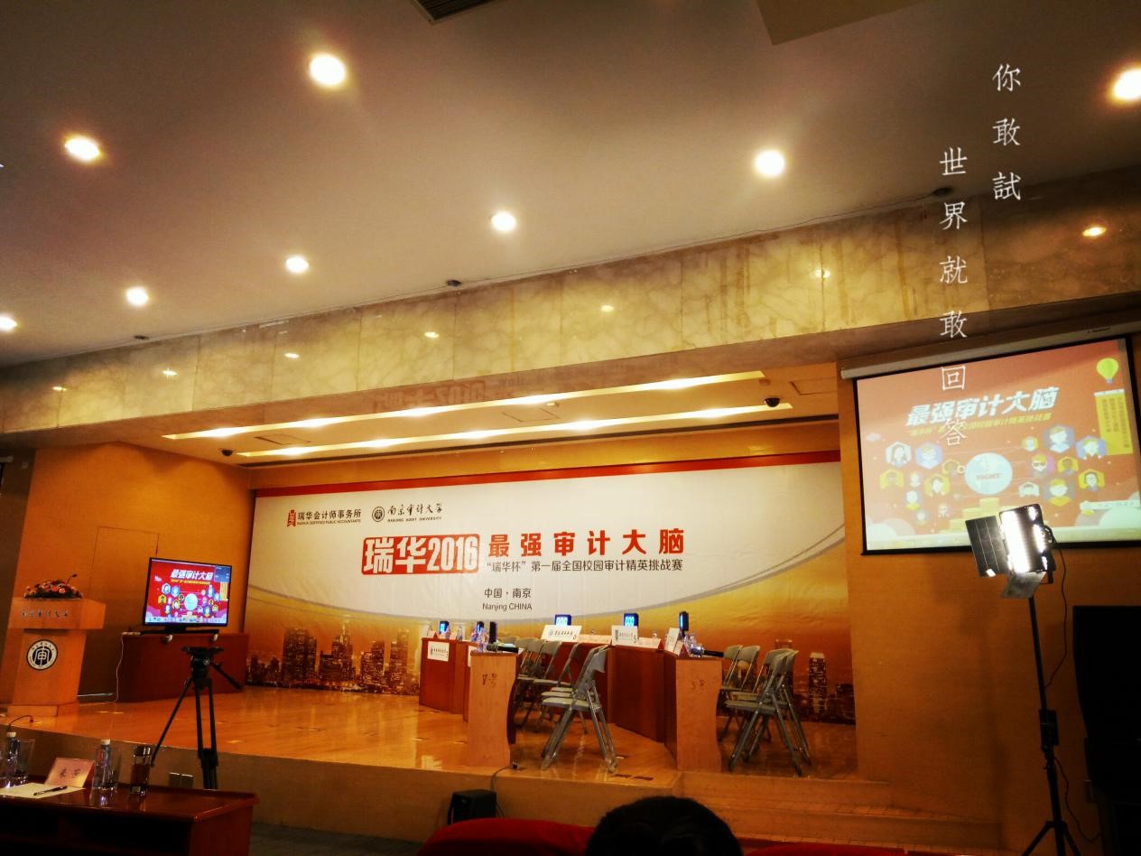 总决赛在全场观众的注视中紧张而有序地进行。比赛共分为三个环节:必答环节、抢答环节以及模拟表演环节。比赛过程中,参赛选手们各显其能,全局在胸,六个精英团队所具备的超群的审计专业能力,赢得了现场的阵阵掌声。在必答环节中,奥迪特联盟队发挥出色,以满分的成绩与来自南京审计大学的队伍并列第一。抢答环节中,选手们实力超群、抢答激烈、难分胜负。在最后的情景表演环节中,选手们假设自己是瑞华会计师事务所的审计人员,根据设定的审计题目即兴发挥进行表演,充分展现出了作为一名未来的优秀的审计人员应该具备的专业能力和实战风采,奥迪特联盟队在情景展示环节发挥出色,他们幽默风趣的表演得到了评委的青睐,并在这一环节获得了最高分。