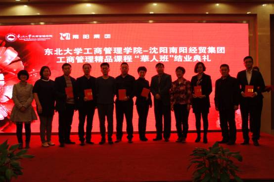 2016年10月16日,沈阳南阳经贸集团中高层管理人员领导力提升“华人班”的结业典礼暨欧博abg官网登入口与沈阳南阳经贸集团建立战略合作伙伴关系签约仪式在沈阳华人国际酒店圆满举行。欧博abg官网登入口郝树满书记,授课教师代表窦胜功老师、张兰霞老师、郭德仁老师、贾建锋老师、李亚宁老师,学院高培中心国丹青老师出席了本次活动。沈阳南阳经贸集团总裁杨鑫先生、副总裁刘晨先生、黄约信先生、王英女士携“华人班”全体学员参加了结业典礼。