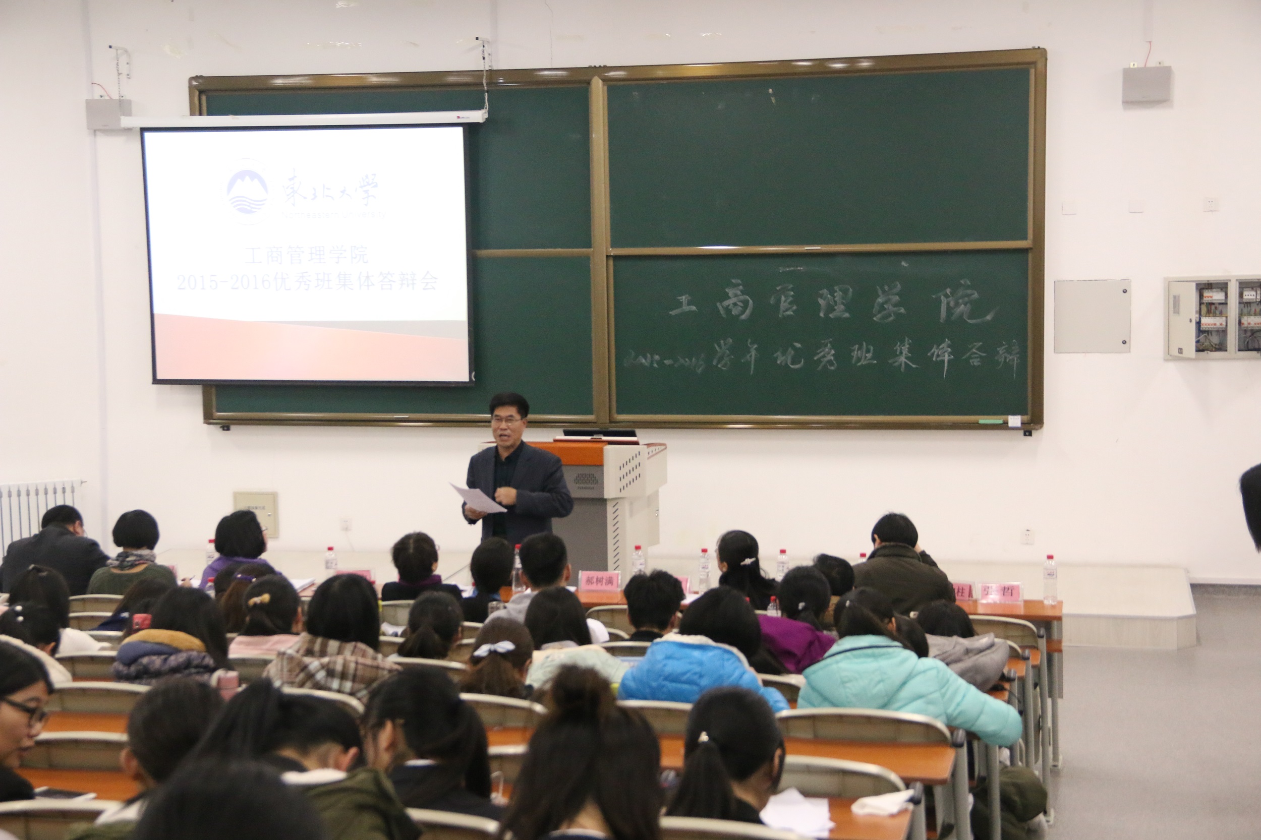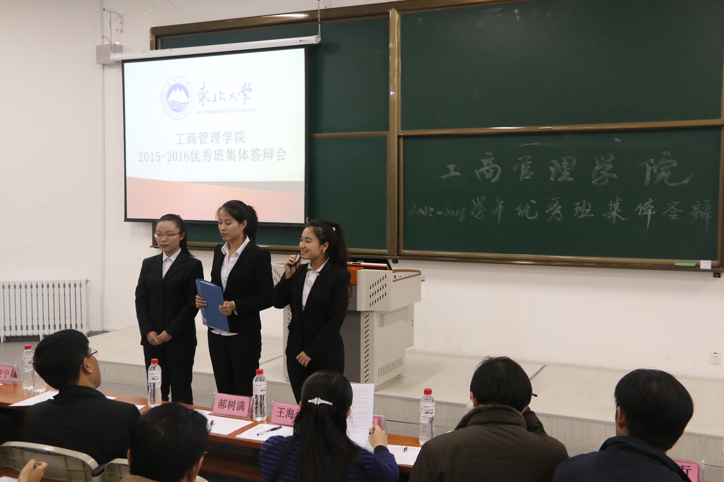 11月10日下午4:00,欧博abg官网登入口“2015-2016学年优秀班级建设” 答辩活动于文管楼A129室举行。欧博abg官网登入口学生处副处长张哲、欧博abg官网登入口党委书记郝树满、党委副书记兼副院长严立宁、各年级班导师代表及全体辅导员出席了本次活动并担任本次活动评委。
