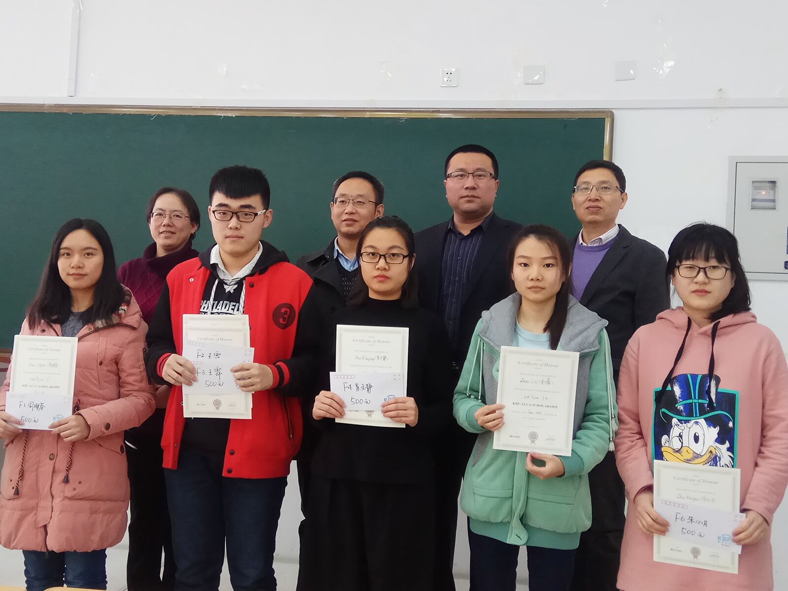 座谈会之后,客人和领导到文管学馆B110参加了ACCA单科第一名奖学金的颁奖仪式,楷博财经教育为欧博abg官网14级ACCA方向班的6名学生颁发了奖学金和证书,温总和严院长及周老师分别发表了讲话,对学生提出更高的要求和期待。