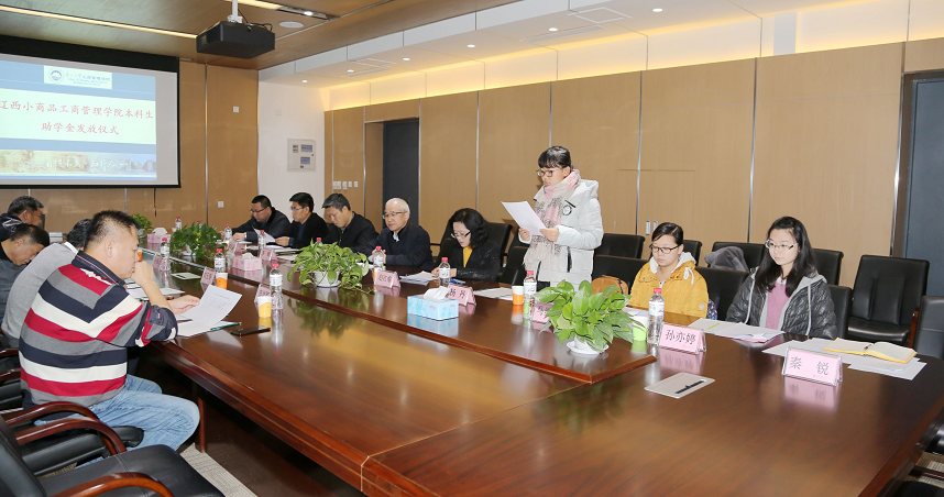 2016年12月20日下午,欧博abg官网登入口在文管学馆B座306室举行 “辽西小商品欧博abg官网登入口本科生助学金”发放仪式。辽西小商品批发市场服务有限公司董事长孙振元,沈阳市丰融包装科技有限公司总经理张远忠,大连银行沈阳分行营业部总经理、84级校友刘玉春,沈阳新经纬金属材料有限公司总经理、85级校友李学军,欧博abg官网登入口对外联络与合作处处长李鹤,欧博abg官网登入口院长马钦海,院党委书记郝树满,副院长赵红梅,院党委副书记兼副院长严立宁出席活动。活动由严立宁主持。