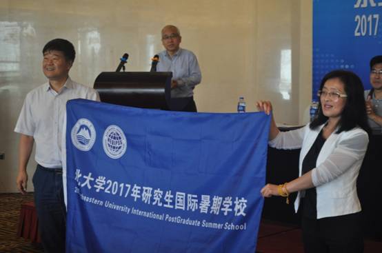 研究生院院长巩恩普向欧博abg官网登入口授予暑期学校旗帜,2017欧博abg官网登入口研究生国际暑期学校正式开始。