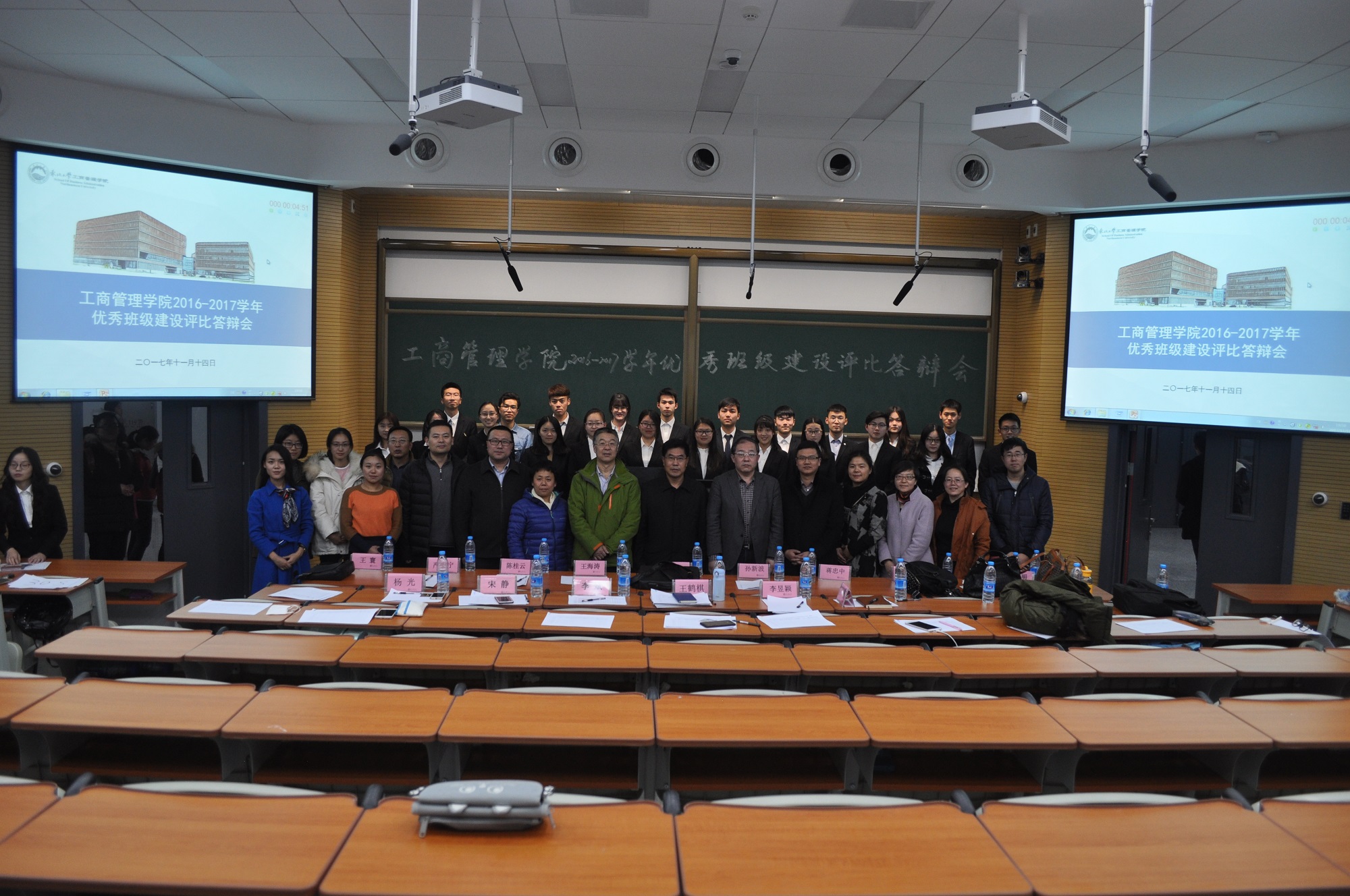 11月14日下午6:00,欧博abg官网登入口优秀班集建设评比答辩会于浑南校区1号楼A109成功举办。欧博abg官网登入口党委书记郝树满,副院长孙新波,党委副书记兼副院长严立宁,班导师蒋忠中、王海涛、戚桂清、周黎明、许波、陈桂云,学院办公室主任王寰以及学生工作办公室的各位老师作为评委出席答辩会,2017级本科生各班班委观摩了此次答辩会。