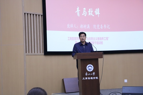 10月10日15:30,欧博abg官网登入口“青年马克思主义者培养工程”第十三期学生干部骨干培训班开班典礼及第一次理论授课于文管学馆B450室圆满举行。校团委书记闫研、欧博abg官网登入口党委书记郝树满、学院党委副书记兼副院长严立宁、学院团委书记王鹤棋、学院2018级本科生辅导员刘宇豪出席活动。学院团委副书记胡思明主持本次仪式,第十三期全体青马学员参与此次活动。