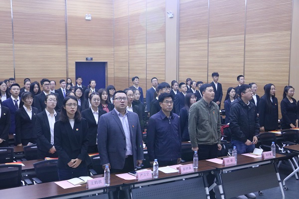 仪式以全体奏唱国歌作为开始。安雨星作为第十二期青马学员代表发言,她分享了上期青马工程的学习经验与心得,表明了青年大学生坚定不移做马克思主义实践者与传播者的重要意义。盛婕代表本期青马学员发言,她表明青年应当有树立崇高理想的信念,与弘扬青马精神、学习先进思想的信心。