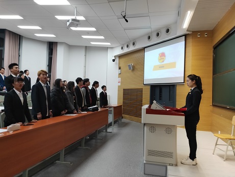 主持人宣布新团员名单,新团员进行入团宣誓。优秀团员代表刘锴为新团员颁发团员证、佩戴团徽。主持人宣读《团章》条款。黄如意作为本次新团员代表发言,她表示今后将时刻明确团员的责任,遵照团的章程,执行团的决议,服从团的组织纪律和团组织布置的工作任务,不折不扣履行团员义务,同时还将遵纪守法,遵守学校各项规章制度,时时处处起模范带头作用。优秀团员代表盛婕发言,她鼓励新团员们在中国共青团这个先进而温暖的组织中能发挥各自的特长,互帮互助、努力学习,为团旗增辉增色,为团支部做出贡献。仪式在全体起立奏唱国歌中圆满结束。
