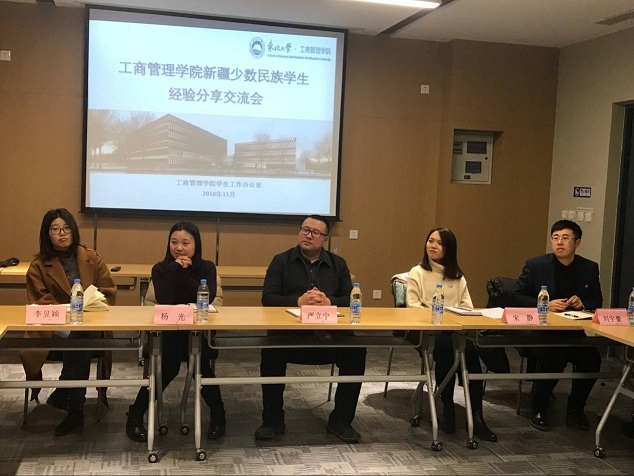 11月28日下午,欧博abg官网登入口新疆少数民族学生经验分享交流会于文管楼B301成功召开。欧博abg官网登入口党委副书记兼副院长严立宁、学生工作办公室主任杨光以及各年级辅导员出席座谈会,2017级和2018级新疆少数民族学生参加会议。