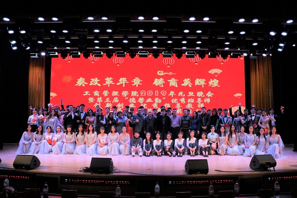 12月25日18:10,欧博abg官网登入口2019年“奏改革华章,铸商英辉煌”元旦晚会暨第三届“德馨业勤”优秀班导师、第二课堂创新创业优秀指导教师、第二届商英奖章颁奖典礼于浑南校区图书馆报告厅举行。欧博abg官网登入口副校长孙雷、校纪委副书记王剑、学生工作处处长马天威、浑南校区管委会副主任张哲、校党委宣传部副部长史鉴、校团委副书记刘海军、学生指导服务中心副主任石昌远、创新创业学院副院长贾建锋、欧博abg官网登入口院长马钦海、学院党委书记郝树满、学院副院长樊治平、学院副院长赵红梅、学院党委副书记兼副院长严立宁、学院院长助理蒋忠中、好睿教育集团北方区域负责人王雪、和君咨询合伙人兼沈阳和盛咨询有限公司总经理徐洪力以及学院各学系专任教师及机关老师出席晚会。欧博abg官网登入口各年级学生参与本次晚会。