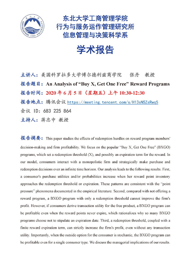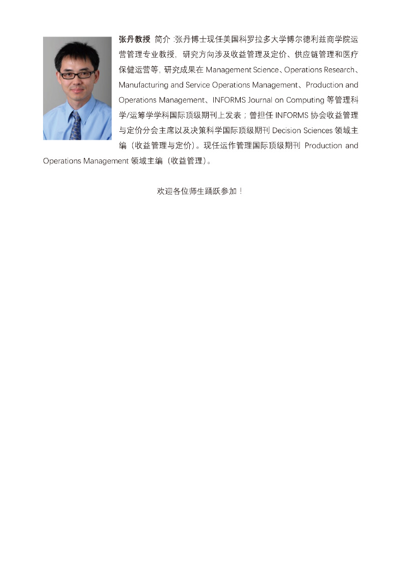 邀请美国科罗拉多大学博尔德利兹商学院张丹教授学术报告