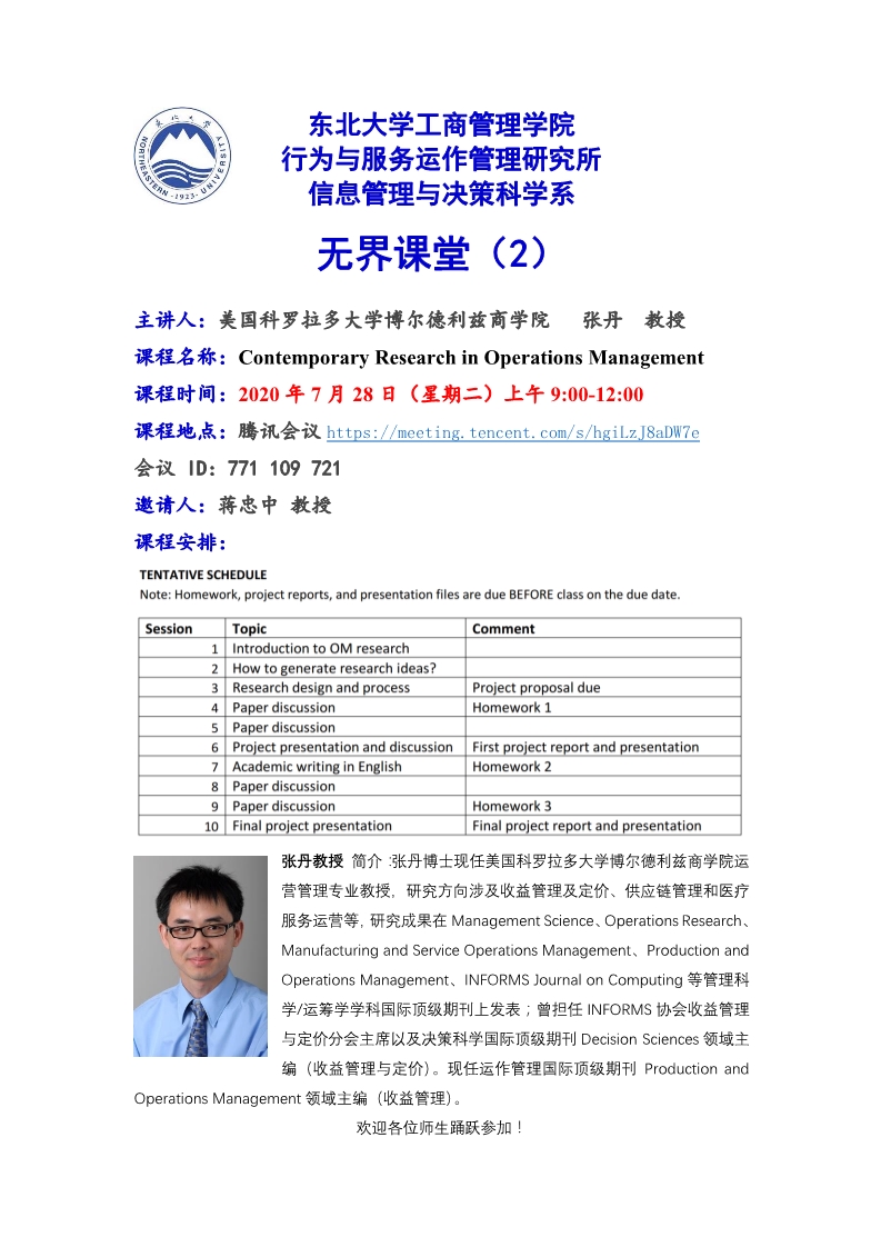 邀请美国科罗拉多大学博尔德利兹商学院张丹教授做客"无界课堂"