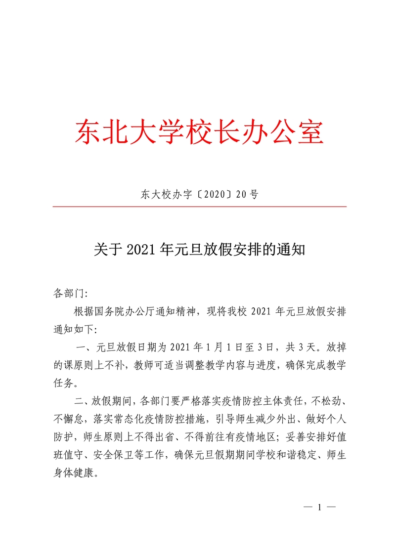 关于2021年元旦放假安排的通知