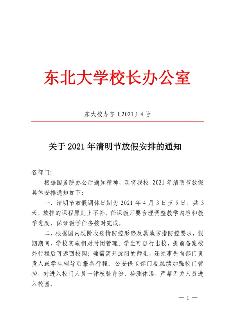 关于2021年清明节放假安排的通知