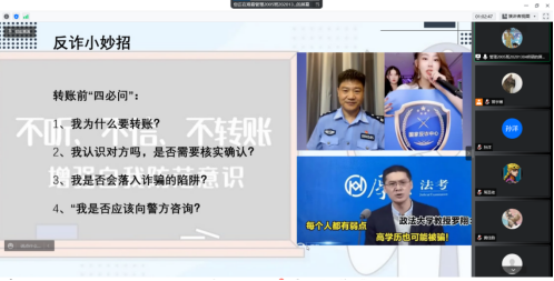 团支书强调了反诈工作的重要性,督促每位同学加强学习反诈知识,并提醒大家不要为不法分子所迷惑,管理好自己的钱财,增强自我防范意识,远离电信诈骗。