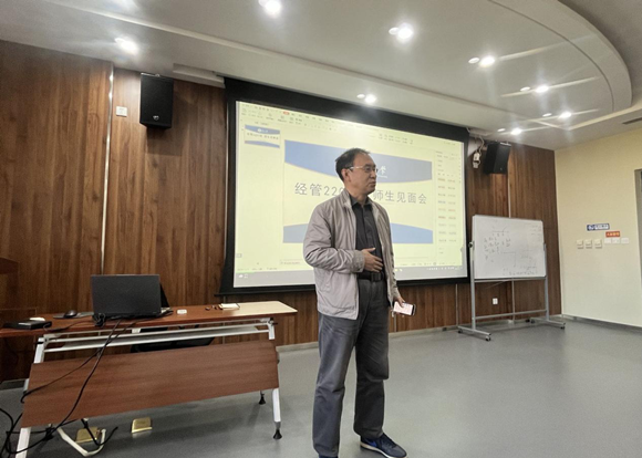 2022年10月5日,经管2203班于文管B320举行班导师见面会。班导师王宝森,辅导员杨光,成长发展指导员金歌应邀出席。本次班导师见面会的主题是“我的生涯谁做主——我的大学梦”。