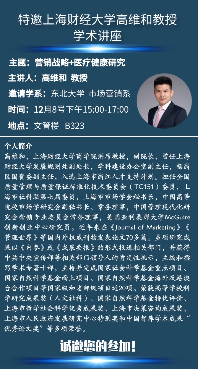 邀请上海财经大学商学院高维和教授学术报告