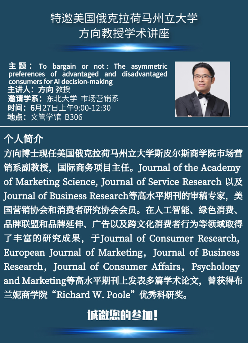 邀请美国俄克拉荷马州立大学方向副教授学术报告
