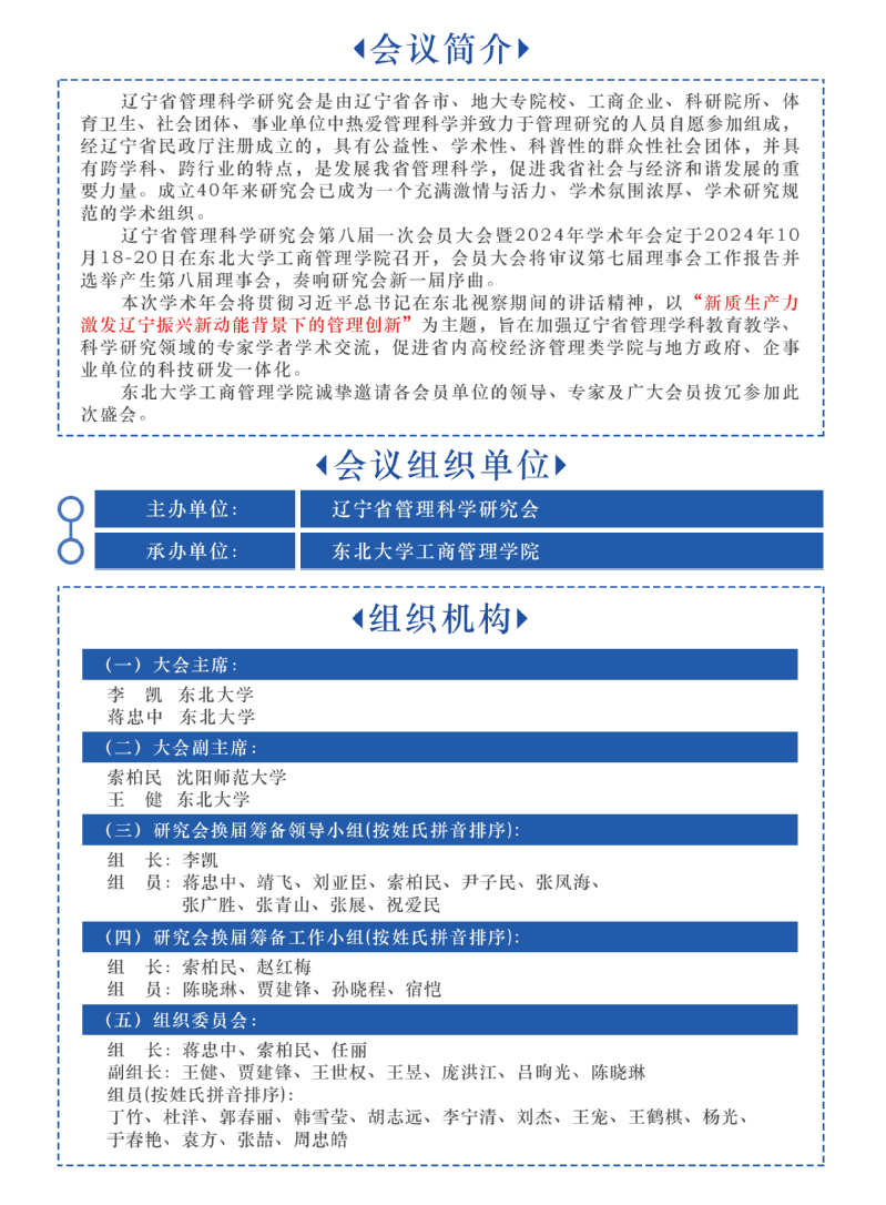 会议手册丨辽宁省管理科学研究会第八届一次会员大会暨2024年学术年会