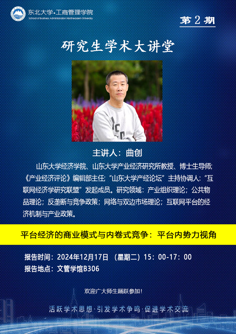 研究生学术大讲堂第2期——邀请山东大学经济学院曲创教授学术报告