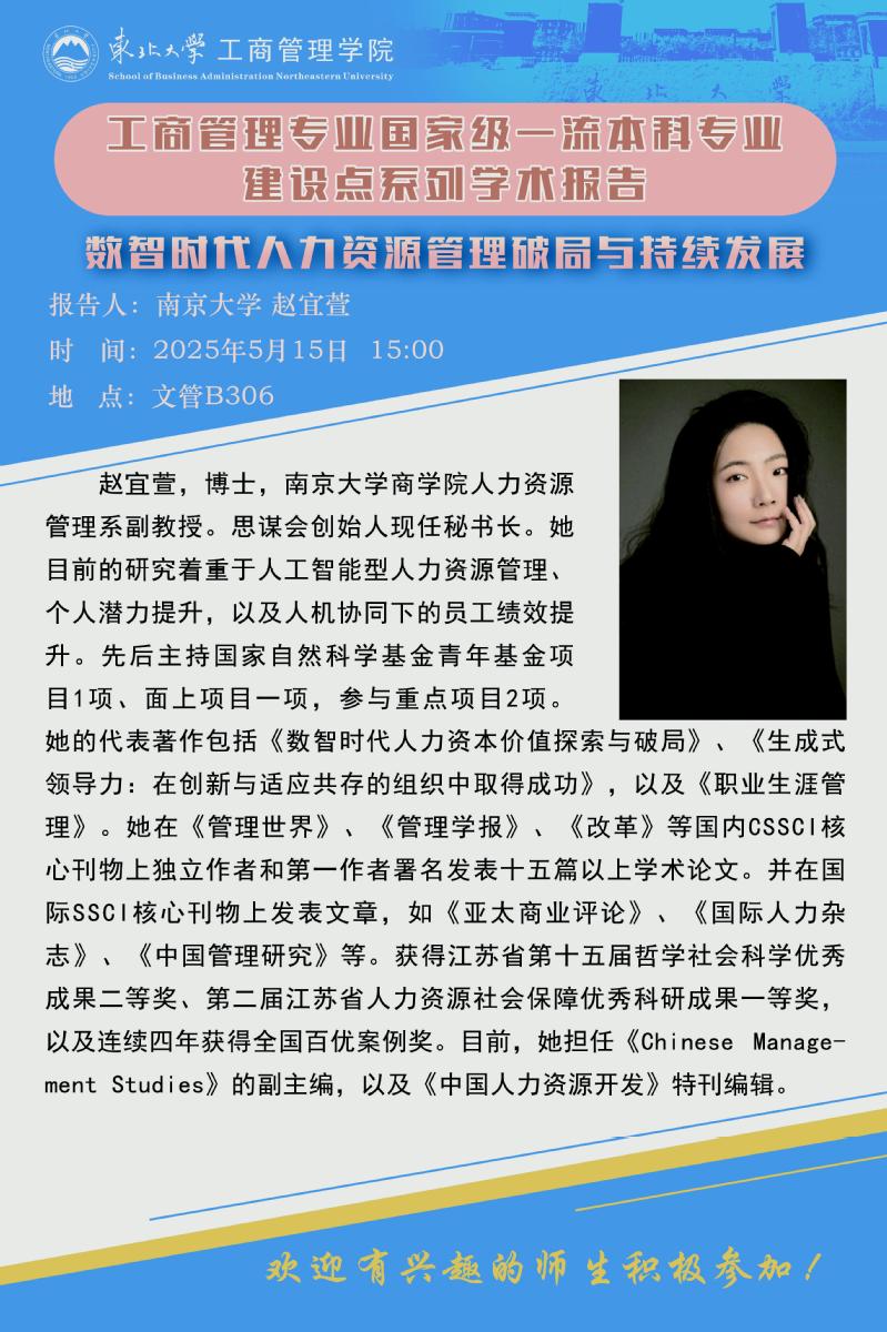 邀请南京大学商学院赵宜萱副教授学术报告