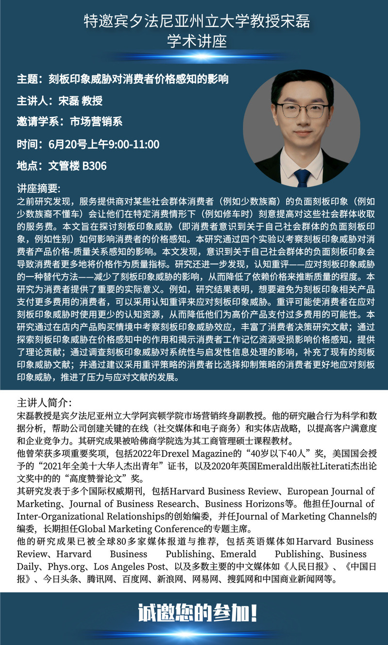 邀请宾夕法尼亚州立大学宋磊教授学术报告