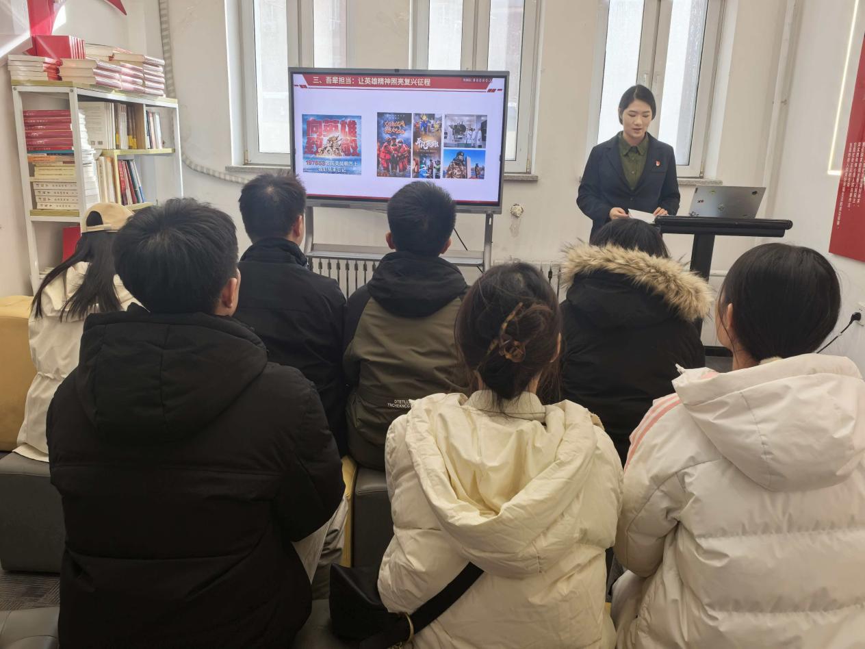 宣讲中,俞馨怡以生动的语言和翔实的史料,系统回顾了抗美援朝战争的历史背景与温井、长津湖、上甘岭等重大战役。通过黄继光、邱少云等英雄事迹,她深刻阐释了志愿军将士在生死考验中铸就的爱国主义、革命英雄主义、革命乐观主义及国际主义精神,展现了他们不畏强敌、忠诚报国的崇高品质。在深悟精神要义部分,她解读了抗美援朝精神的核心内涵,指出其作为中国共产党人精神谱系的重要组成部分,对当代青年坚定信念、锤炼本领、践行奉献具有重要时代价值。宣讲最后引用习近平总书记的重要讲话,号召大家以英雄为榜样,将个人理想融入国家发展大局,在民族复兴征程中挺膺担当。