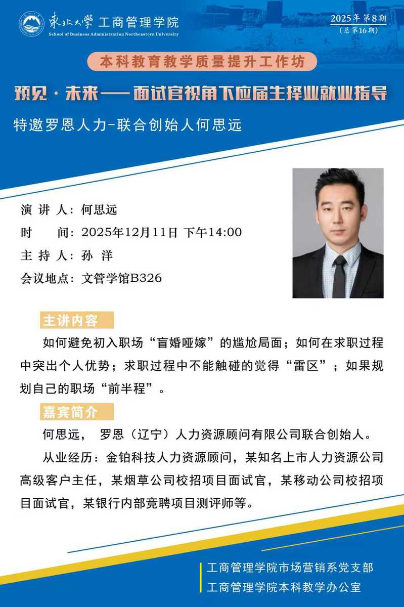 本科教育教学质量提升工作坊-邀请罗恩人力联合创始人何思远学术报告