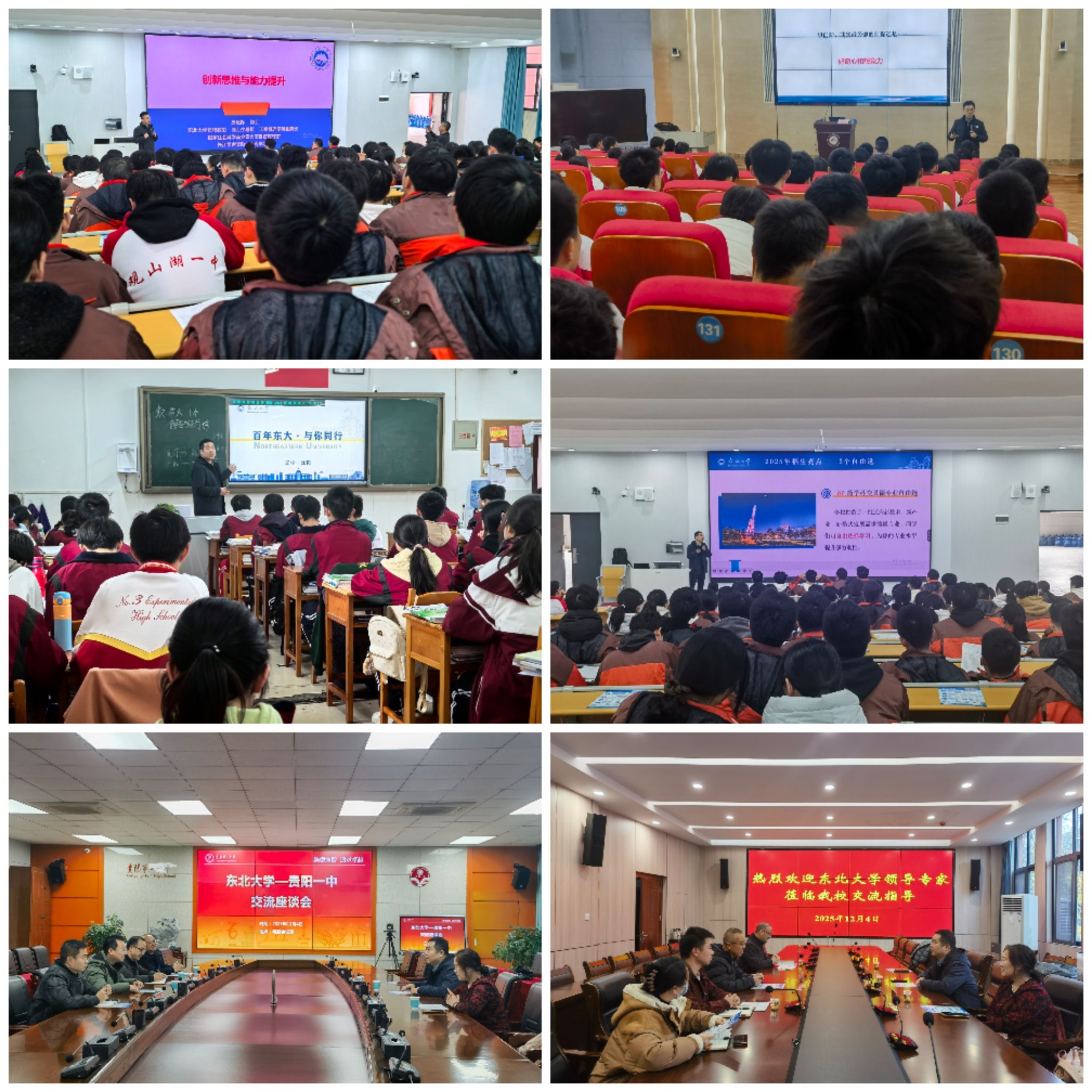 学院一行先后走进贵阳市第一高级中学、贵阳市实验三中、贵阳市清华中学及贵阳市观山湖第一高级中学,与各高中校领导举行座谈交流4场,围绕学校特色、人才培养、学科实力、专业设置等进行深入探讨,并就高中与高校衔接教育达成多项共识。各中学对欧博abg官网登入口主动对接、精准招生的做法表示欢迎,期待未来进一步深化合作。