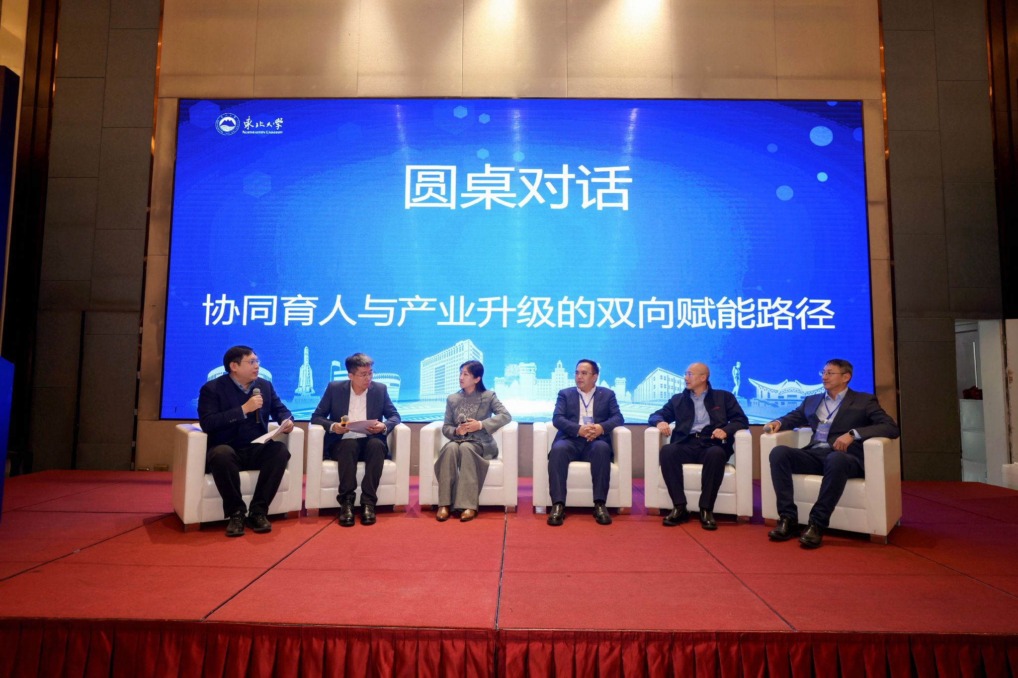 在圆桌对话环节,华晨宝马汽车有限公司沈阳汽车支持项目总监陈卫华、达能电气股份有限公司总裁关慧明、中意人寿保险有限公司辽宁省分公司党支部书记兼总经理肖冰洁、中天辽创投资管理有限公司董事长赵国儒、中国风险投资有限公司合伙人孙琦等多位行业专家,就协同育人、产业升级、MBA教育的赋能价值、创业指导、区域机遇及学员核心竞争力等议题展开了深入交流。